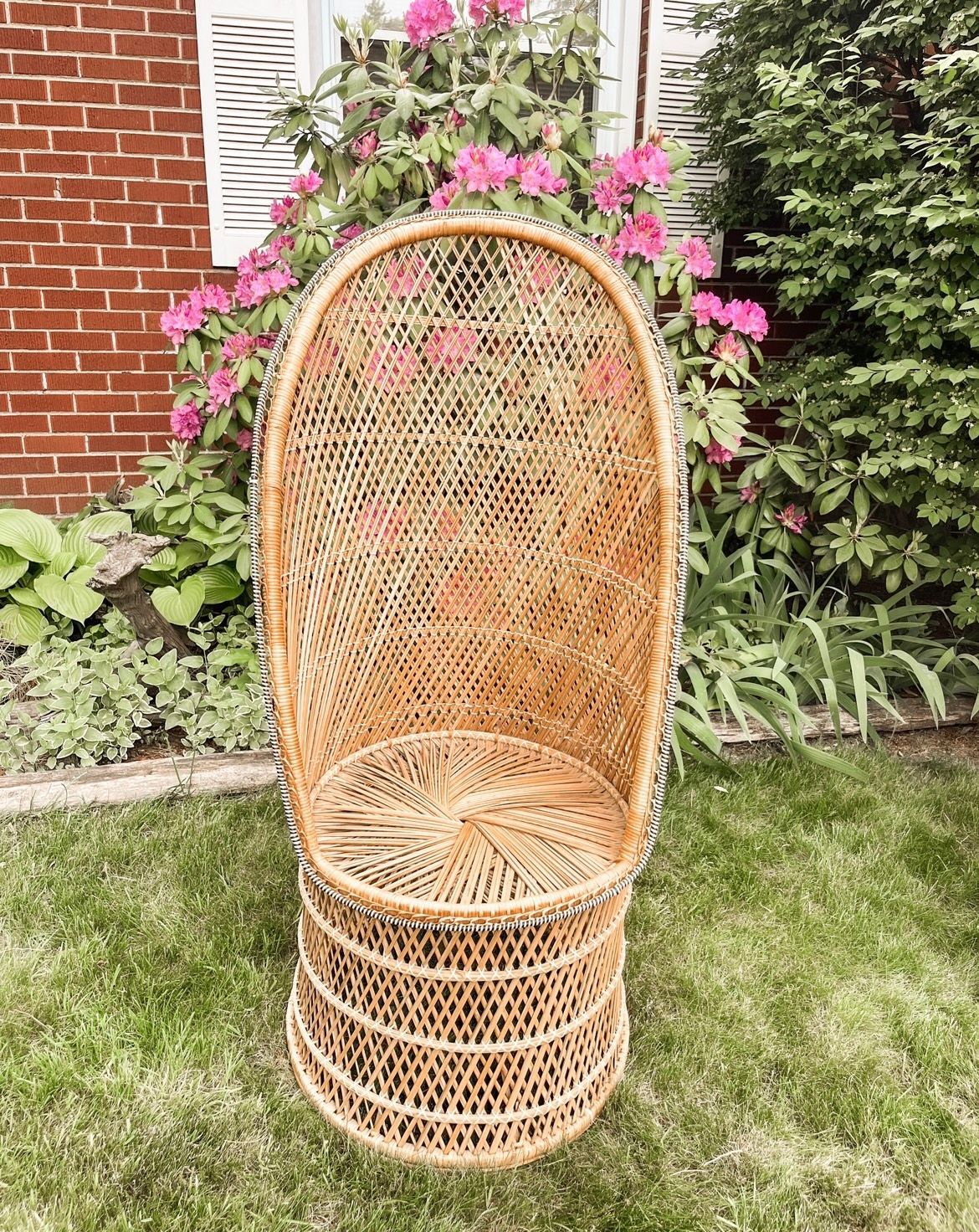 Listed below are our collection of rental items! Our fleet has been paired down to our two wicker chairs; the larger is "The Basic Peacock Chair" while the smaller yet still mighty is the "High Back Wicker Chair". Each chair comes with their own white circular cushion as well! Once you have selected your items, contact me by your preferred method and I will respond with a quote for your items within 48-72 hours! As always all questions or inquires can be directed to me via my contact information as well.
