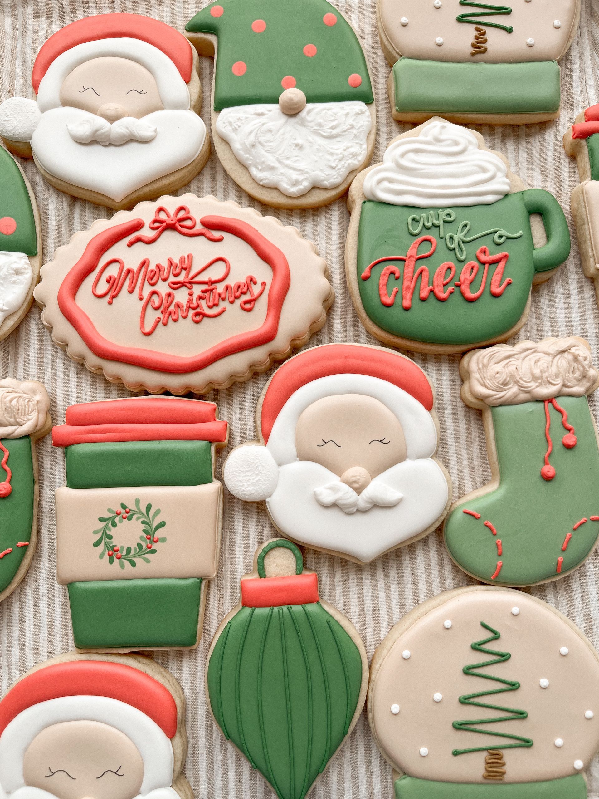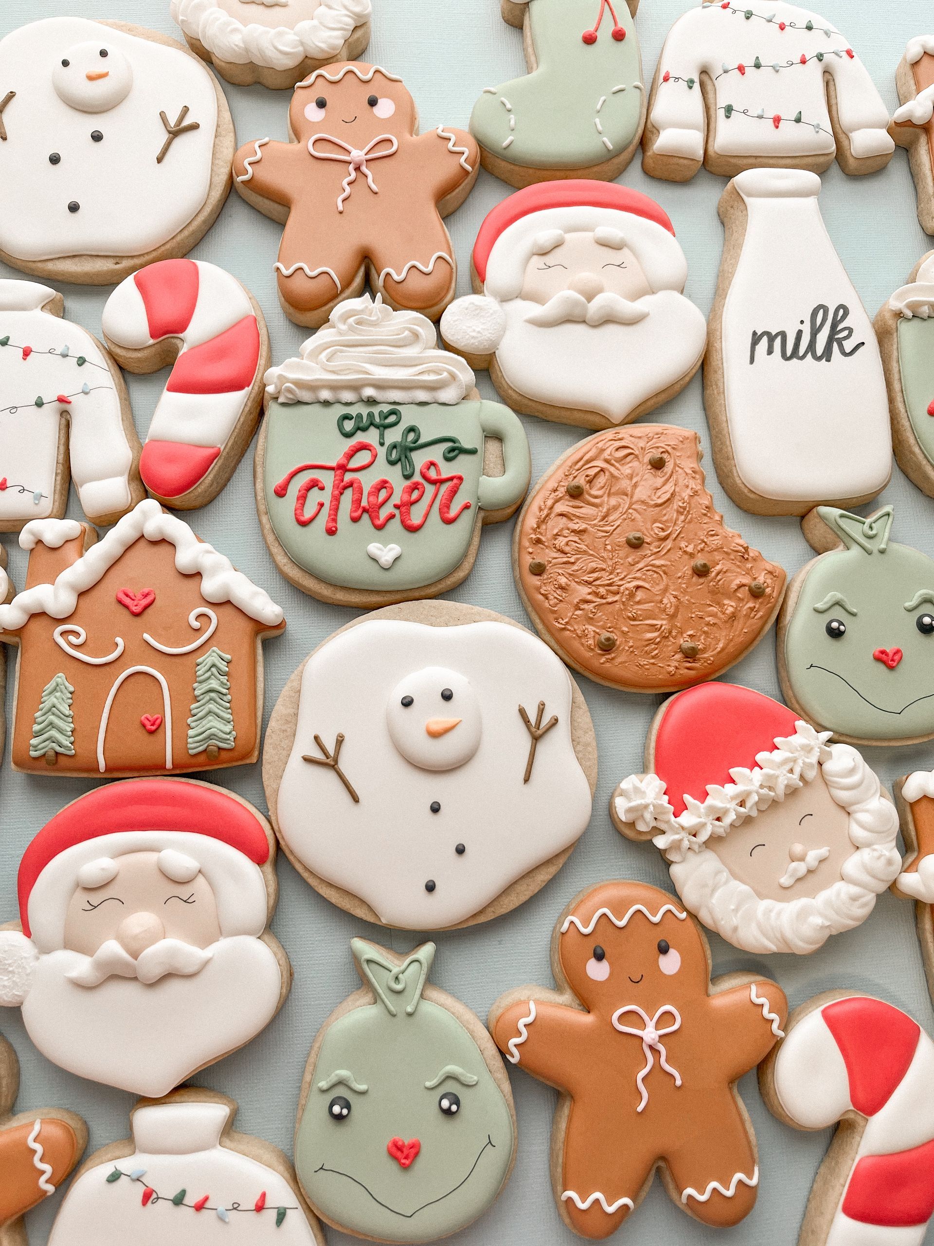 These pictures outline some examples of our sugar cookie orders! Our orders start at $5 per cookie, or bundle for $55 per dozen! Right now we are only taking holiday cookie orders, NO custom orders at this time.