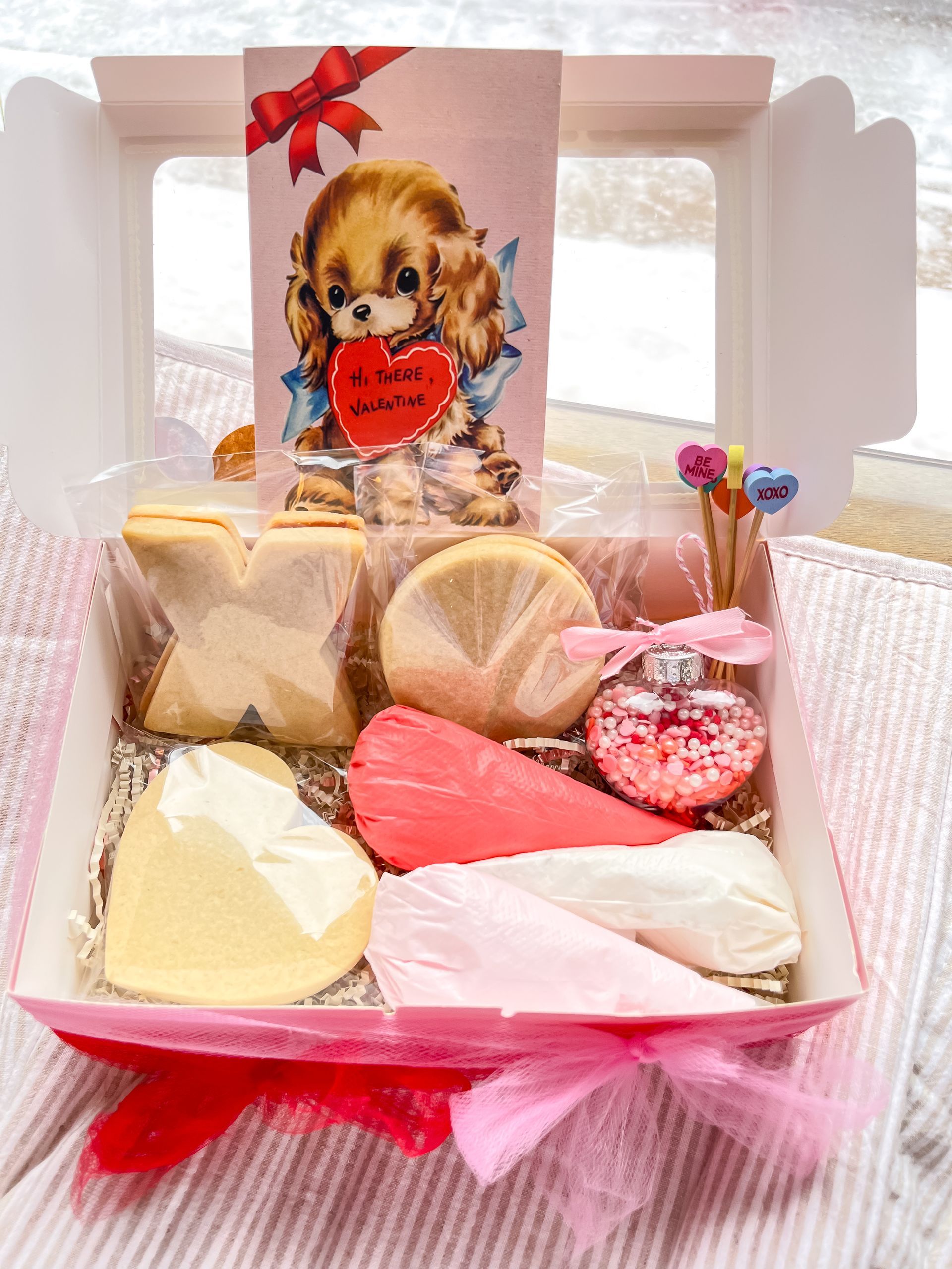 Cookie decorating kits are small activity boxes to create your own cookies! Cookies and icing are already remade, and you get to decorate as you choose! Kits include 6 cookies (3 sets of designs with 2 cookies of each design), 3 different color icing bags, festive sprinkles, toothpick scribes to help spread out icing, and instructions! Kits are $20 each or two for $35.